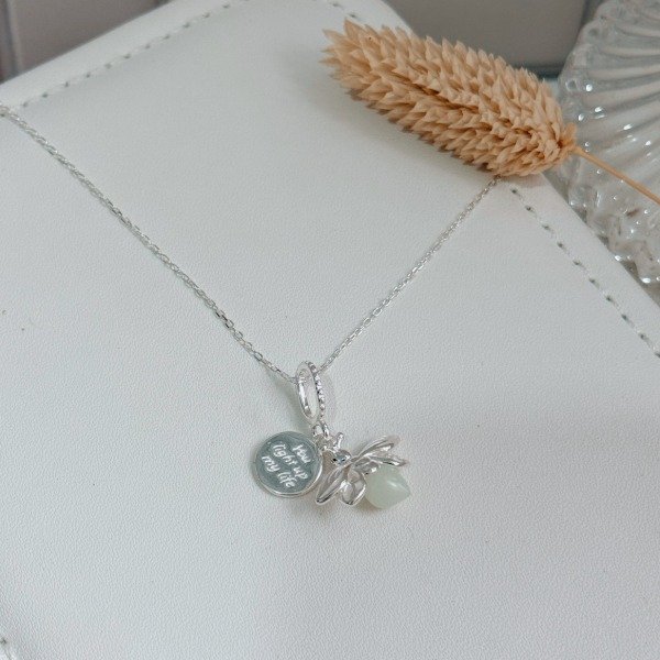 Diseño: Cadena con dijes: una luciérnaga y una medalla grabada.