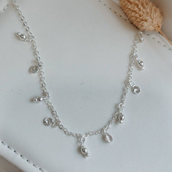 Diseño: Cadena con dijes colgantes de bolitas y cubic cristal