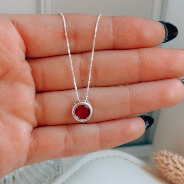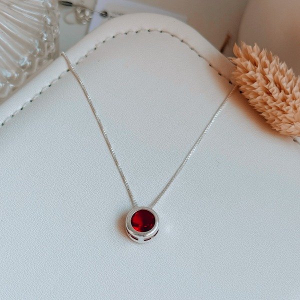 Diseño: Cadena veneciana con dije susanita pasante en forma circular - Cubic color rojo