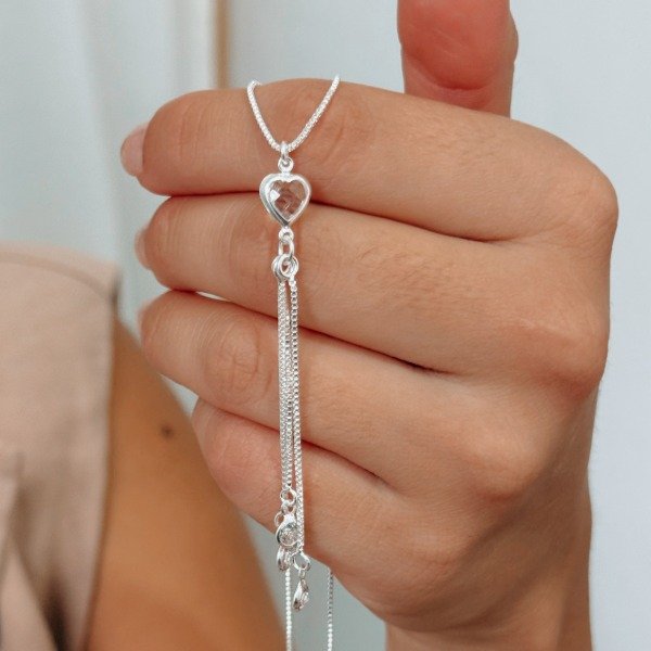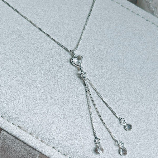 Diseño: Cadena tipo veneciana con dije de corazon cristal y tres cadenita colgando con dijes