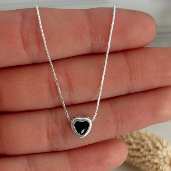 Diseño: Cadena veneciana con dije susanita pasante en forma de corazón - Cubic color negro