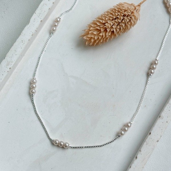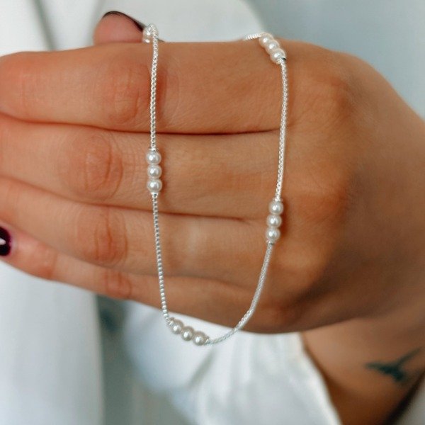 Diseño: Cadena con perlas blancas agrupadas de a tres