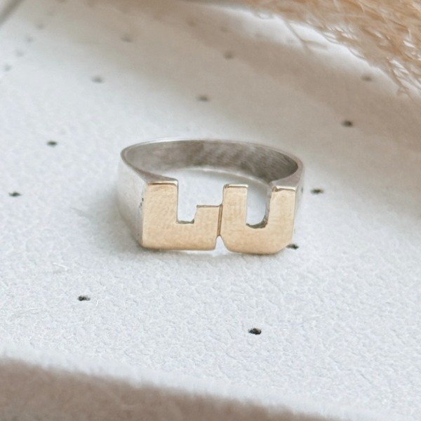 Diseño: Anillo con doble inicial en plata y oro