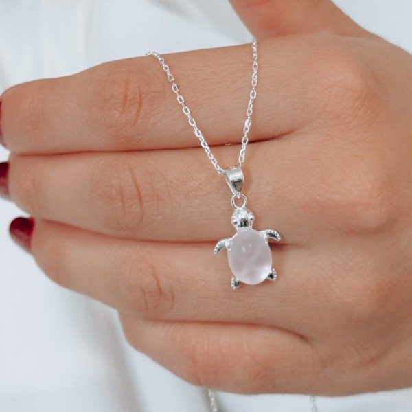 Diseño: Dije en forma de tortuga con caparazón de resina en color rosa