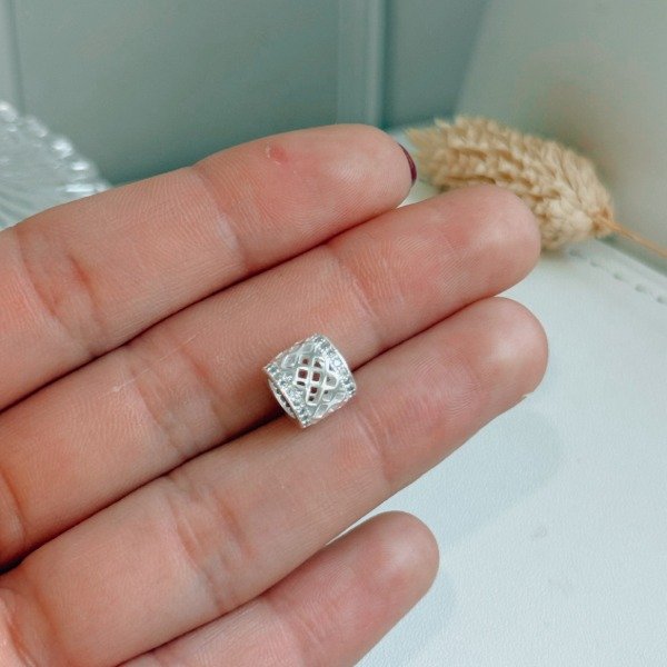 Diseño: Dije para pulsera pandora con diseño de red en el centro y detalles en cubic cristal