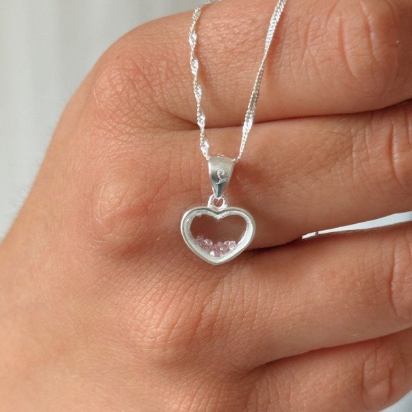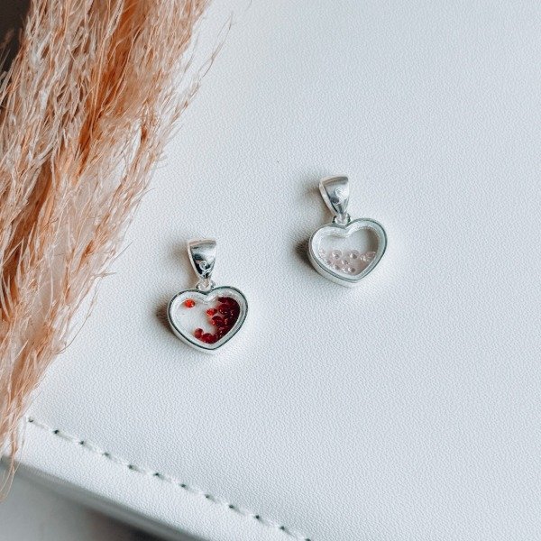 Diseño: Dije en forma de corazón relleno con micro cubic de color rosa o rojo