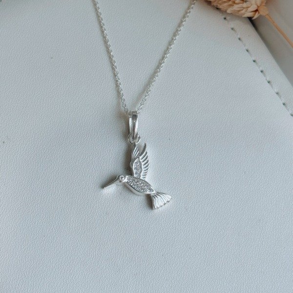 Diseño: Dije en forma de colibrí con micro cubic color rosa