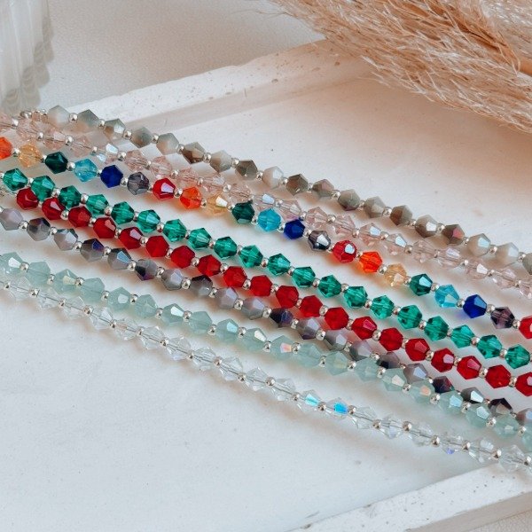 Diseño: Pulsera de cristales checos con bolitas intermedias laminadas en plata