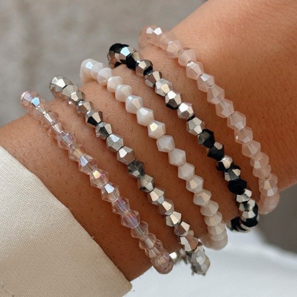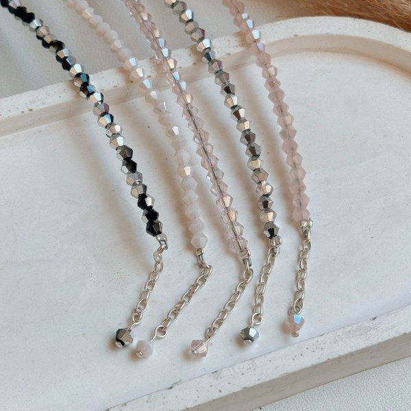 Diseño: Pulsera de cristales checos con bolitas intermedias laminadas en plata - Cadenita extensora y dije en cristal al final