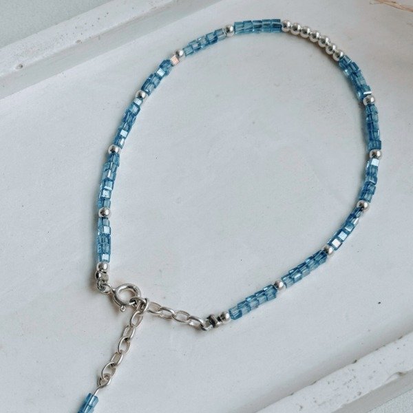 Diseño: Pulsera con dijes swarosvski color azul con bolitas de plata