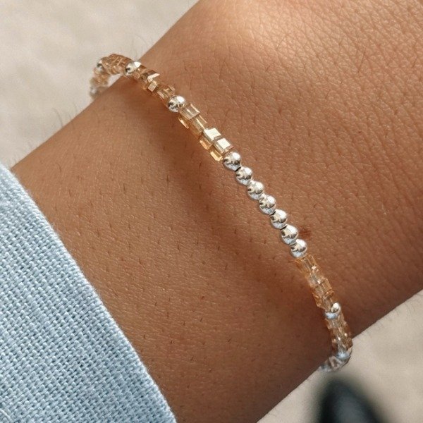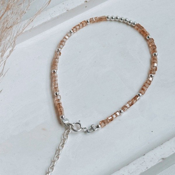 Diseño: Pulsera con dijes swarovski y bolitas de plata