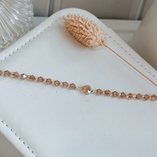 Diseño: Pulsera de cristales checos + corazon con bolitas intermedias laminadas en plata