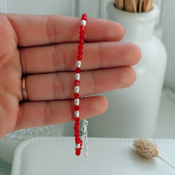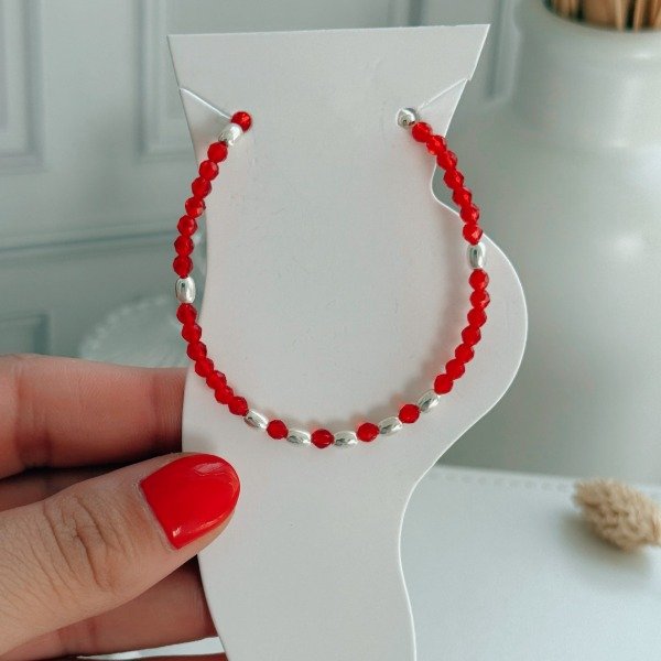 Diseño: Tobillera en cristales swarovsky color rojo combinada con plata