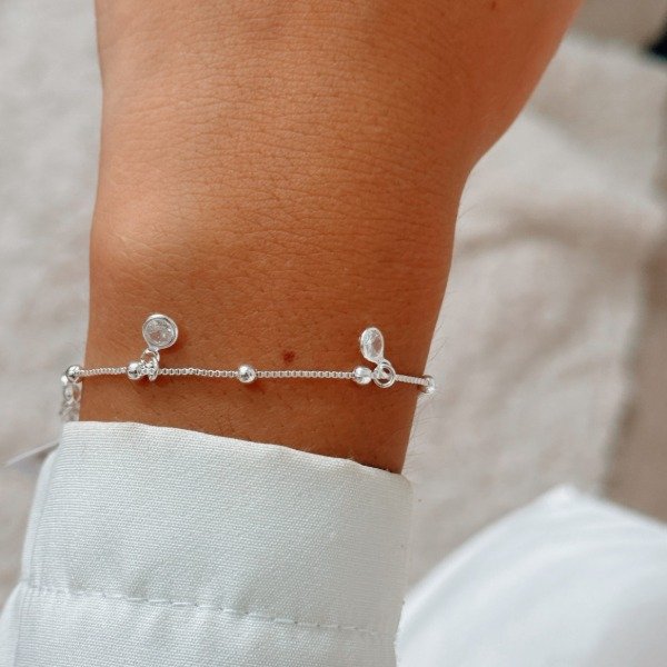 Diseño: Pulsera tipo veneciana con bolas y dijes colgantes en cubic cristal