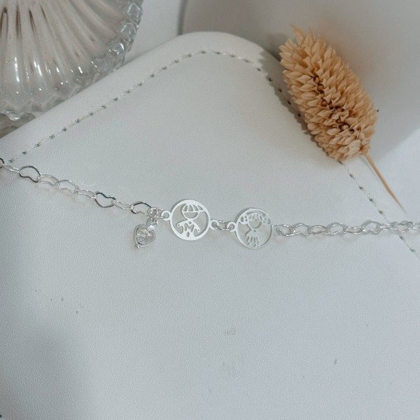 Diseño: Pulsera laminada con dijes de nene y nena + colgante en forma de corazón en cubic cristal