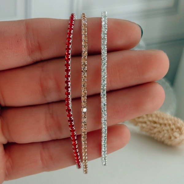 Diseño: Pulsera elástica en plata laminada con cubic cristales continuos
