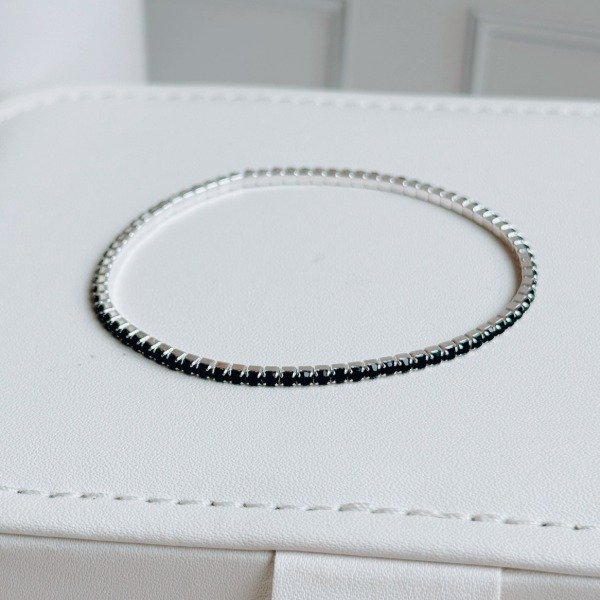 Diseño: Pulsera elástica en plata laminada con cubic cristal color negra continuos