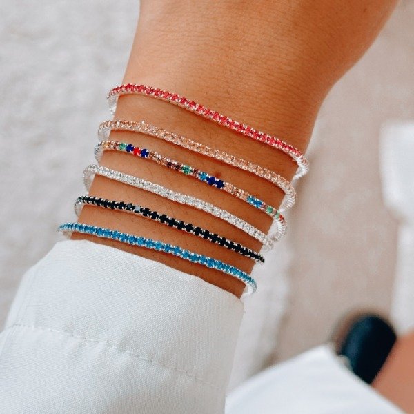 Diseño: Pulsera elástica en plata laminada con cubic cristal color rosa continuos