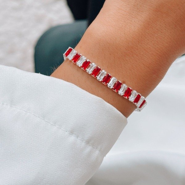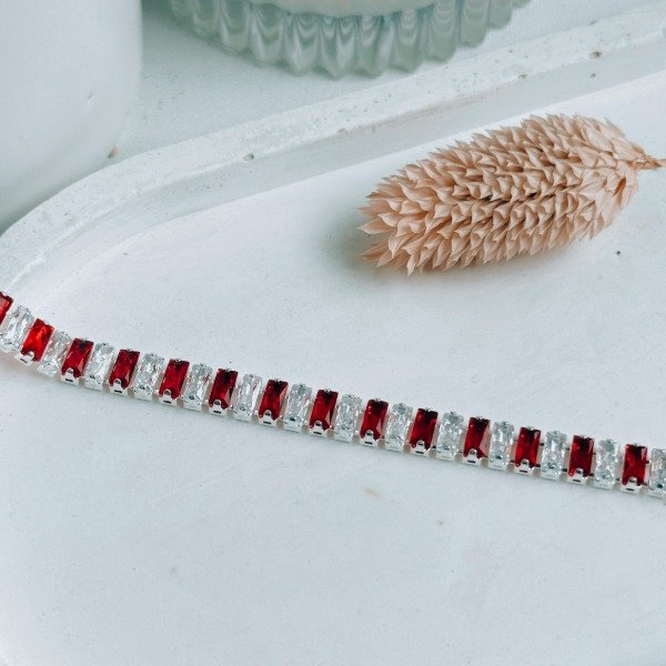 Diseño: Pulsera con cubic color aurora boreal y rojos