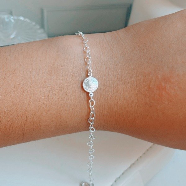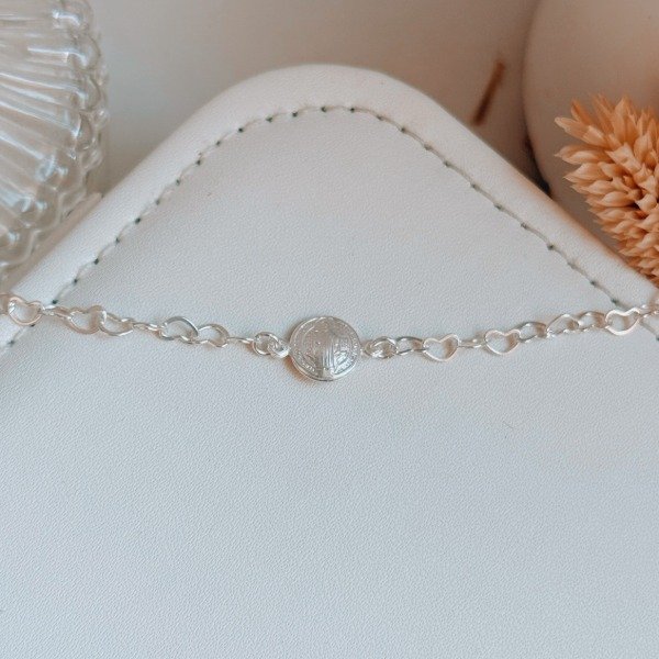 Diseño: Pulsera con cadena en forma de corazones continuos y medalla de San Benito