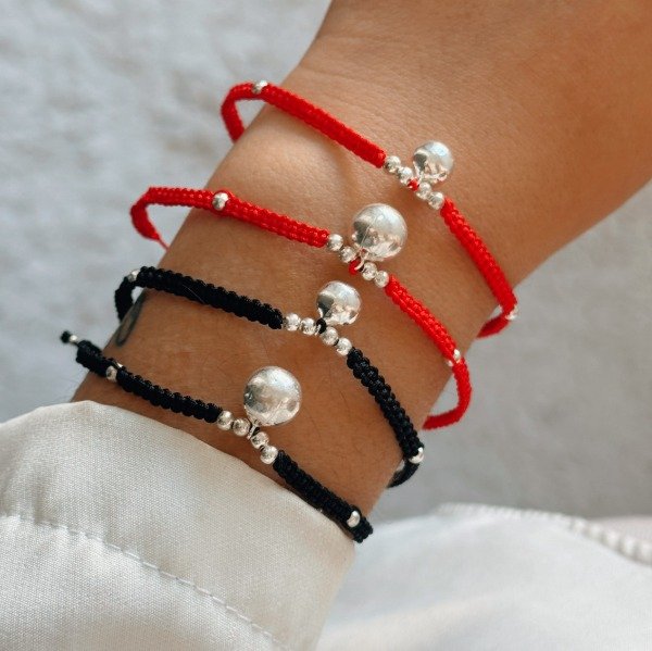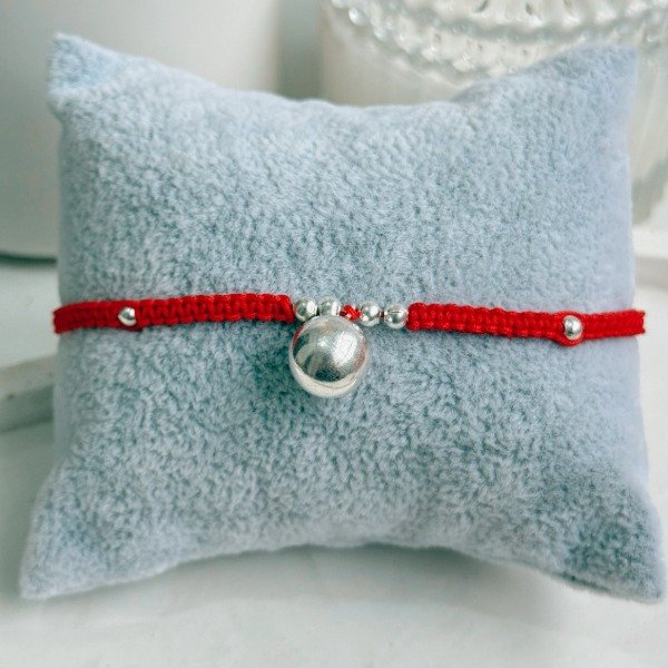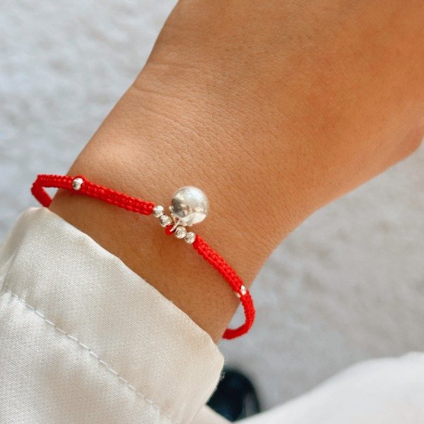 Diseño: Pulsera de hilo rojo con bolitas en plata laminada