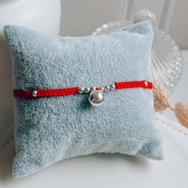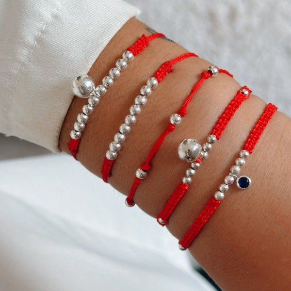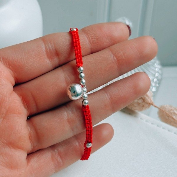 Diseño: Pulsera de hilo rojo con bolitas en plata laminada
