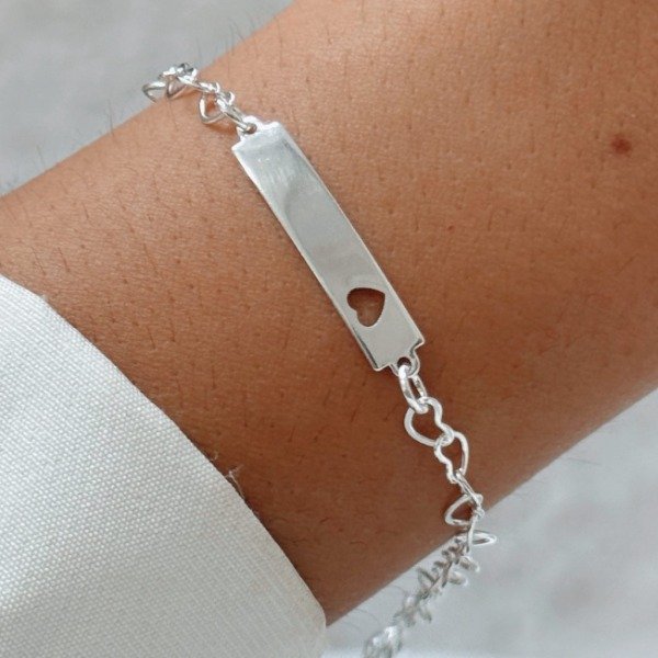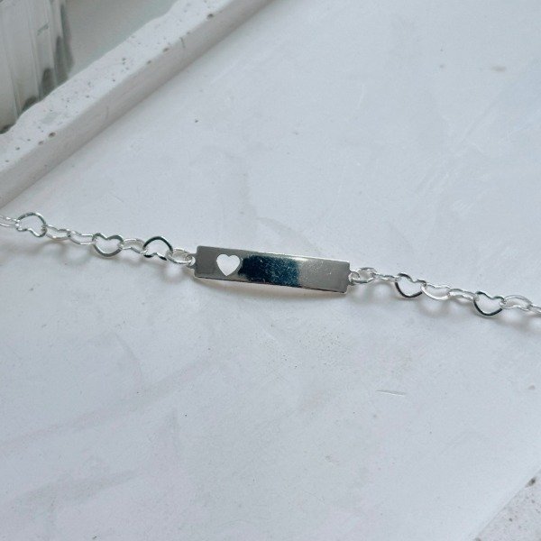 Diseño: Pulsera para grabar con corazón calado y cadena en forma de corazones continuos