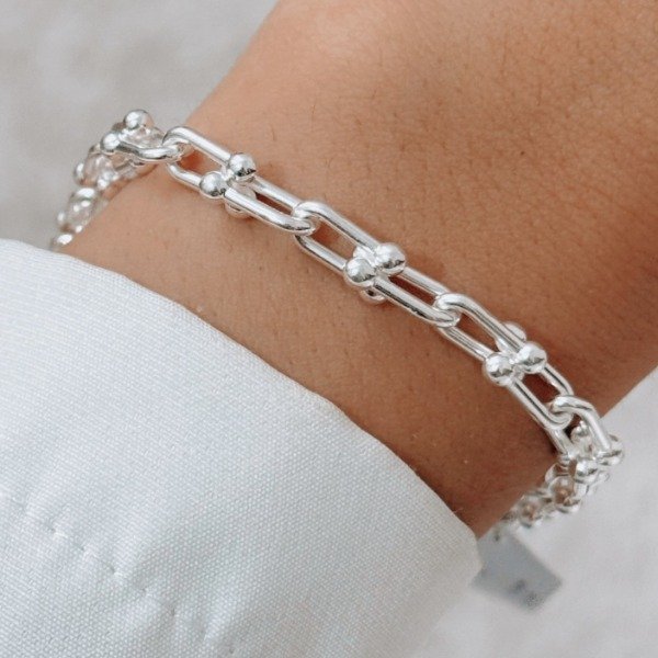 Diseño: Pulsera laminada con forma de cadena y bolitas de plata