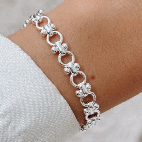 Diseño: Pulsera calada con detalles en forma de bolitas de plata